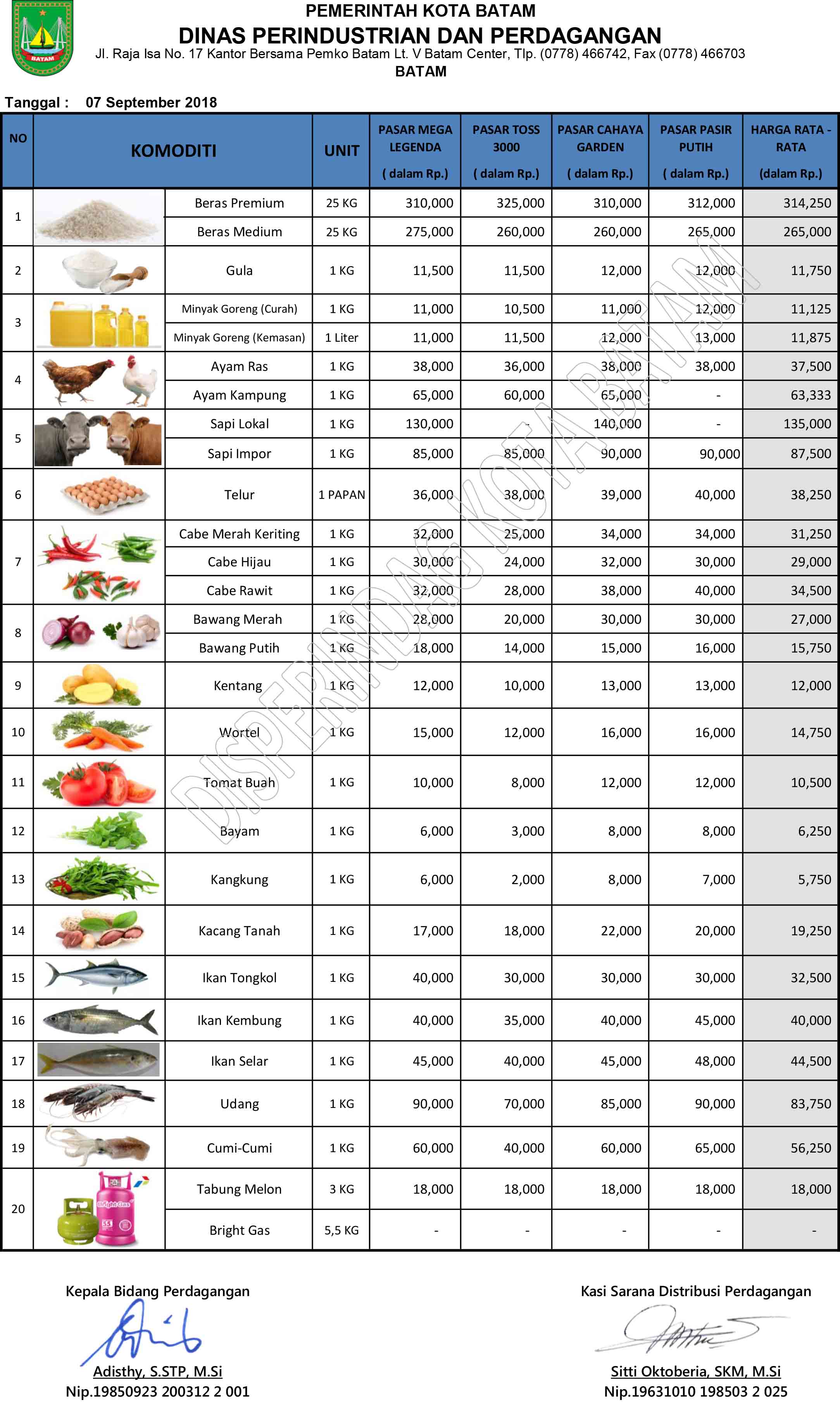 Daftar Harga Komoditi tanggal 4 dan 7 September 2018